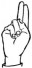 На ћирилици написано РАДНА ЋОКИЋ састоји се из 10 слова [?]. Исписано ћириличном једноручном азбуком за глувонеме: